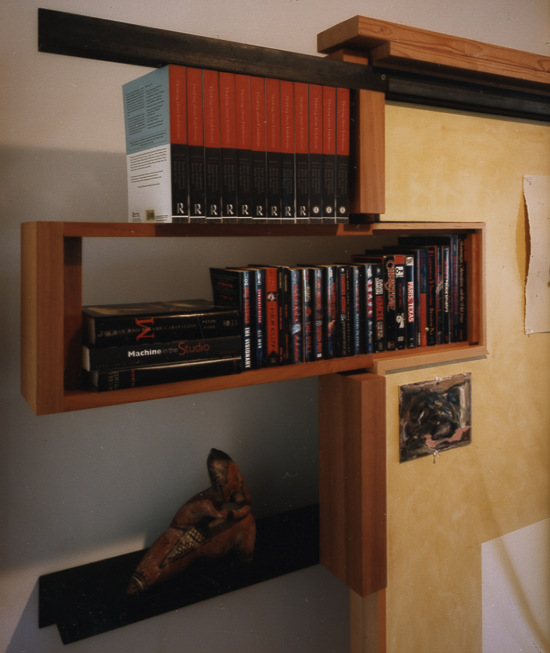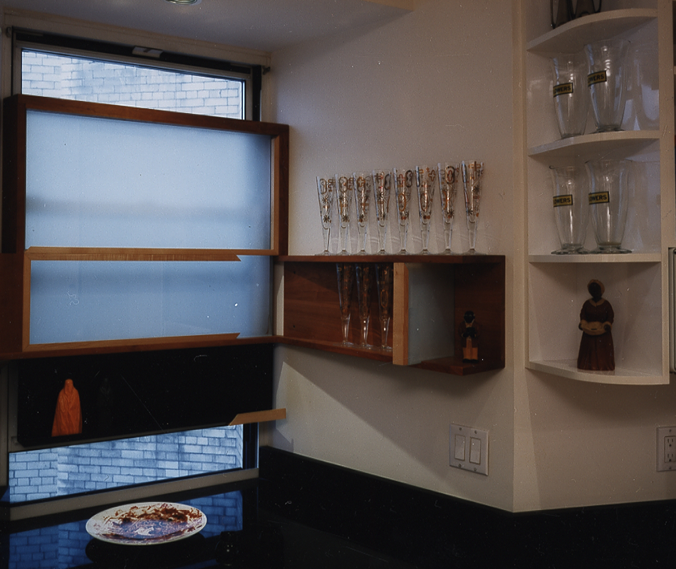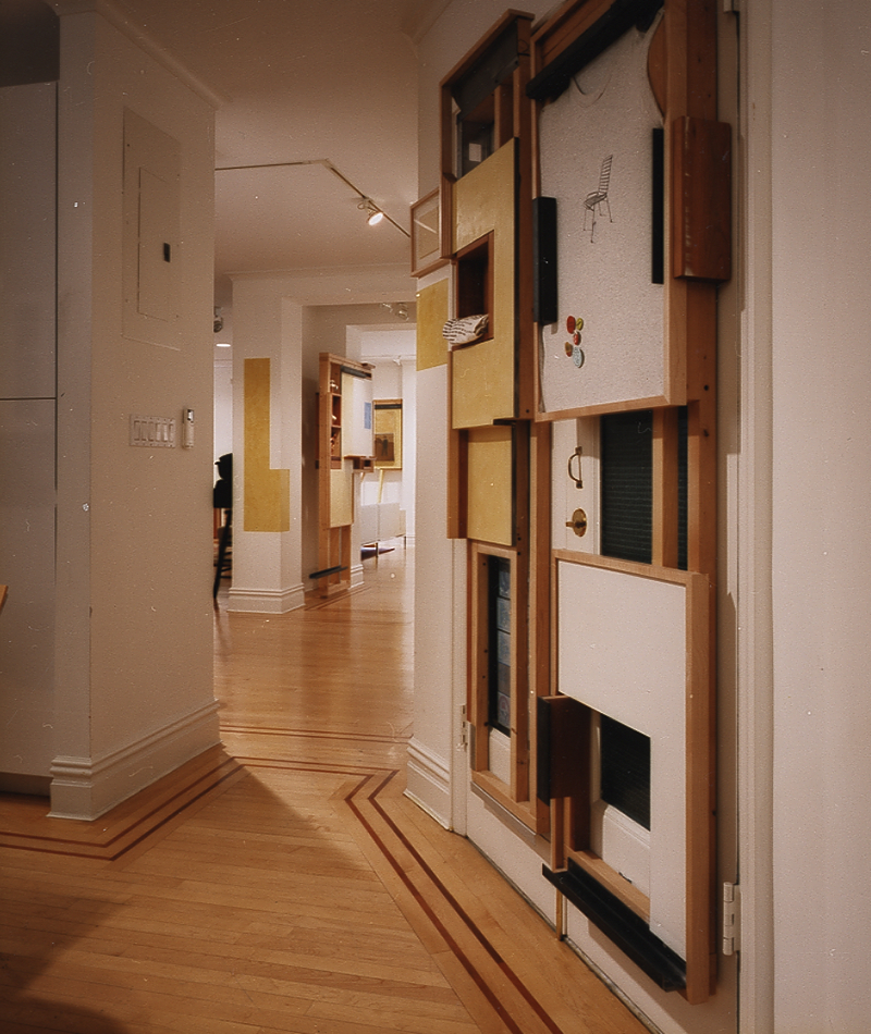 This curatorial architectural system works its way through the apartment, curating the art collection as well as the home collections and home office collections (clothes closets, kitchen cabinet, book shelves and files).