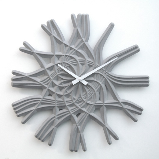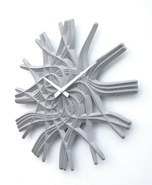 The strands of Roman Time accumulate and disperse, establish and then reestablish their identities as layers of Roman numerals X, V, and I — roaming and repositioning across the clock face. A collaboration of Mark Rakatansky Studio and LeeLabs Studio, this clock explores how time becomes figural through relations of positioning, numbering, and scaling. In production: 2012-2014.