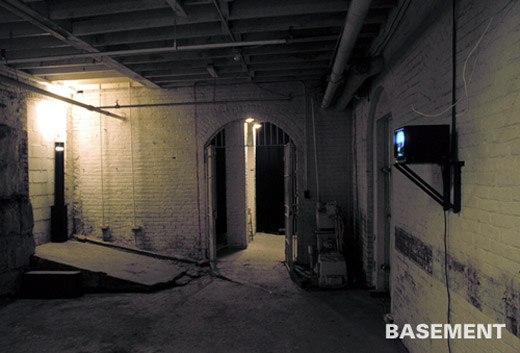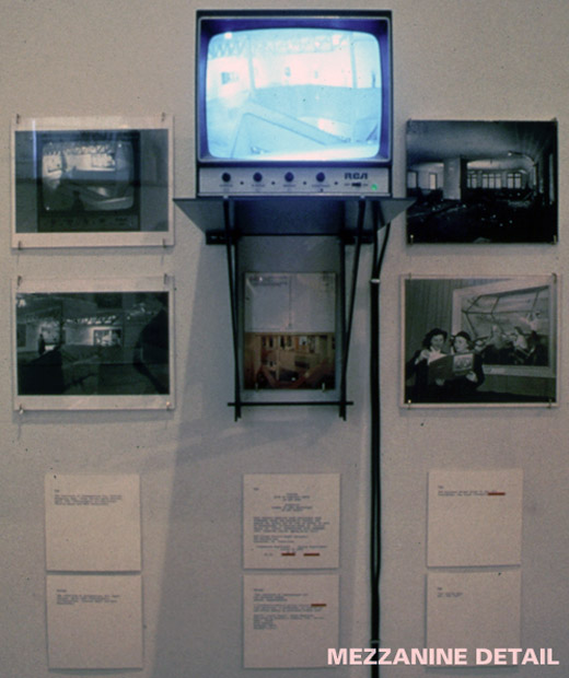 The building that housed the prior incarnation of Boston’s Institute of Contemporary Art was formerly a police station. The installation was conceived as a section through the building, and physically occupied five levels: the main mezzanine, three stair landings, and the sub-basement (used as storage space, but opened for this exhibit).