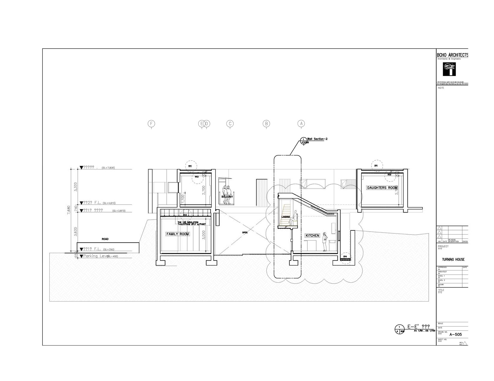 In the midst of a turn: rather than just setting Turning House on the site, the building sited in the act of positioning and repositioning.